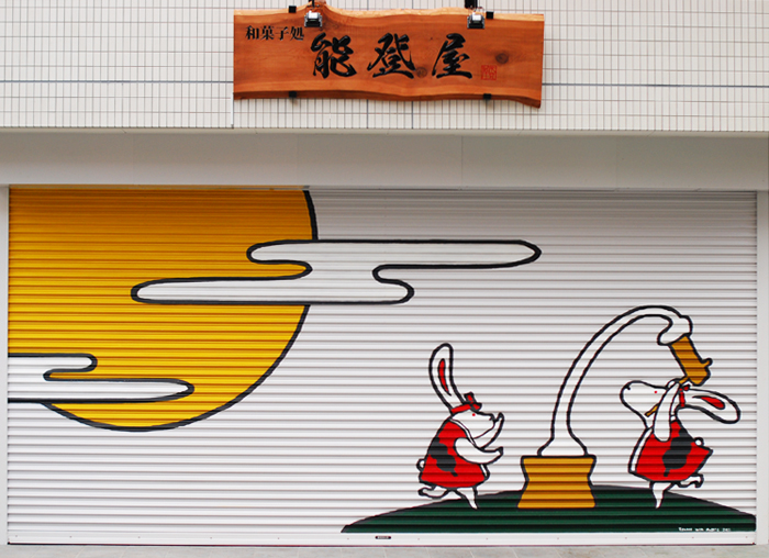 シャッターに絵を描くということが初めてだったので、でこぼこの面に輪郭を描くことが非常に難しく、